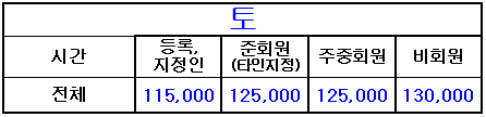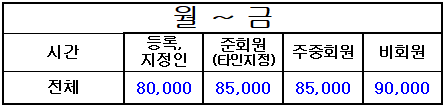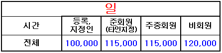 * 등록지정인, 준회원(타인지정), 주중회원 요금은 회원권과 관련된 [회원요금]이며