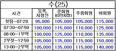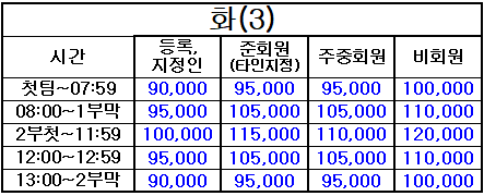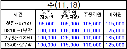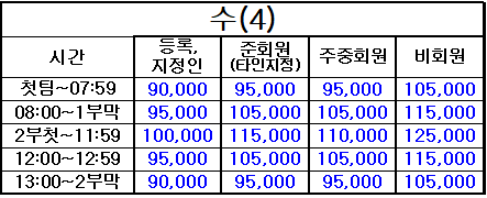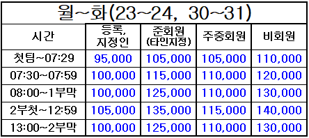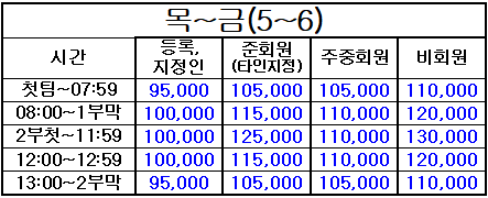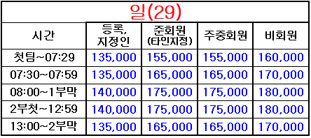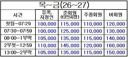 4. 표기되지 않은 시간은 정상 그린피(기본 그린피) 적용