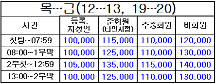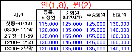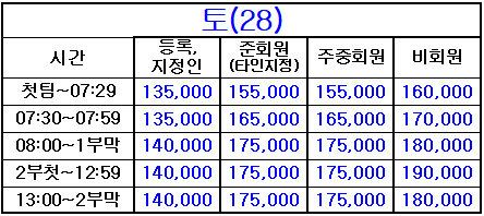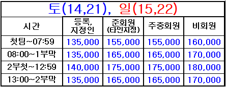 * 등록지정인, 준회원(타인지정), 주중회원 요금은 회원권과 관련된 [회원요금]이며