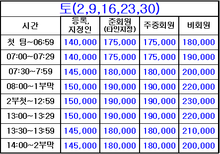 * 등록지정인, 준회원(타인지정), 주중회원 요금은 회원권과 관련된 [회원요금]이며