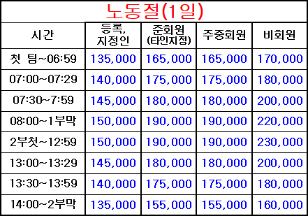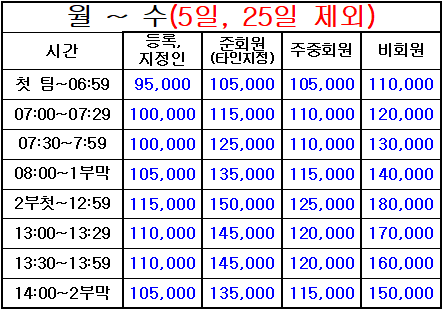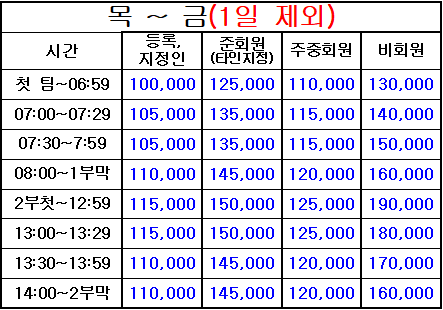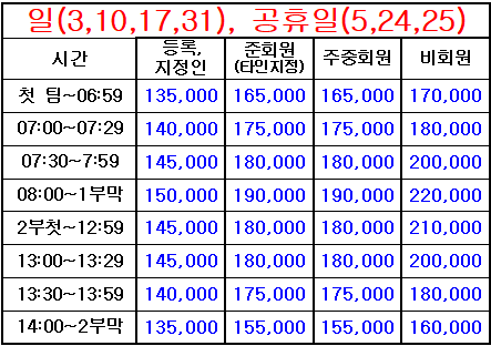 4. 표기되지 않은 시간은 정상 그린피(기본 그린피) 적용