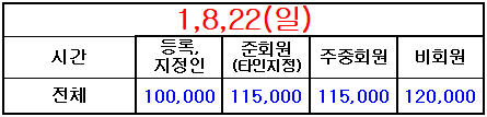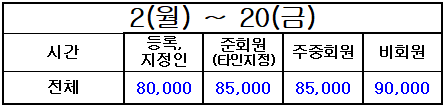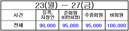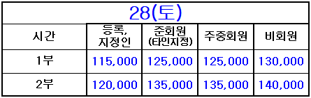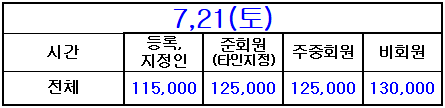 * 등록지정인, 준회원(타인지정), 주중회원 요금은 회원권과 관련된 [회원요금]이며