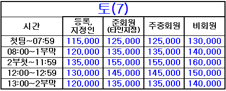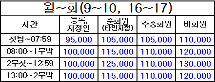 4. 표기되지 않은 시간은 정상 그린피(기본 그린피) 적용